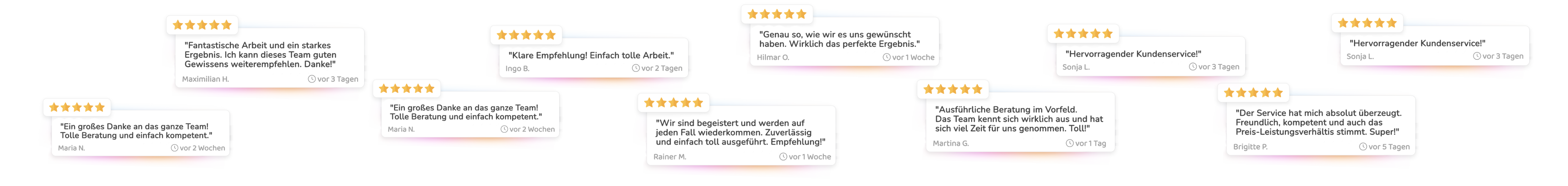 Laufend neue Bewertungen, ein Google-Profil, das mit jedem Auftrag wächst und eine starke Kundenbindung. So wirst du häufiger Menschen aus deiner Umgebung gezeigt, die genau nach deiner Dienstleistung suchen.